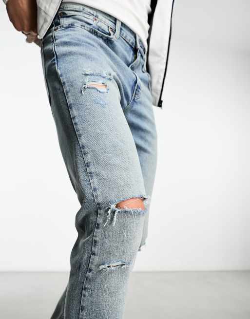 Levi's discount 512 ripped, Levi s 512 slim taper jeans in light blue wash with knee rips discount