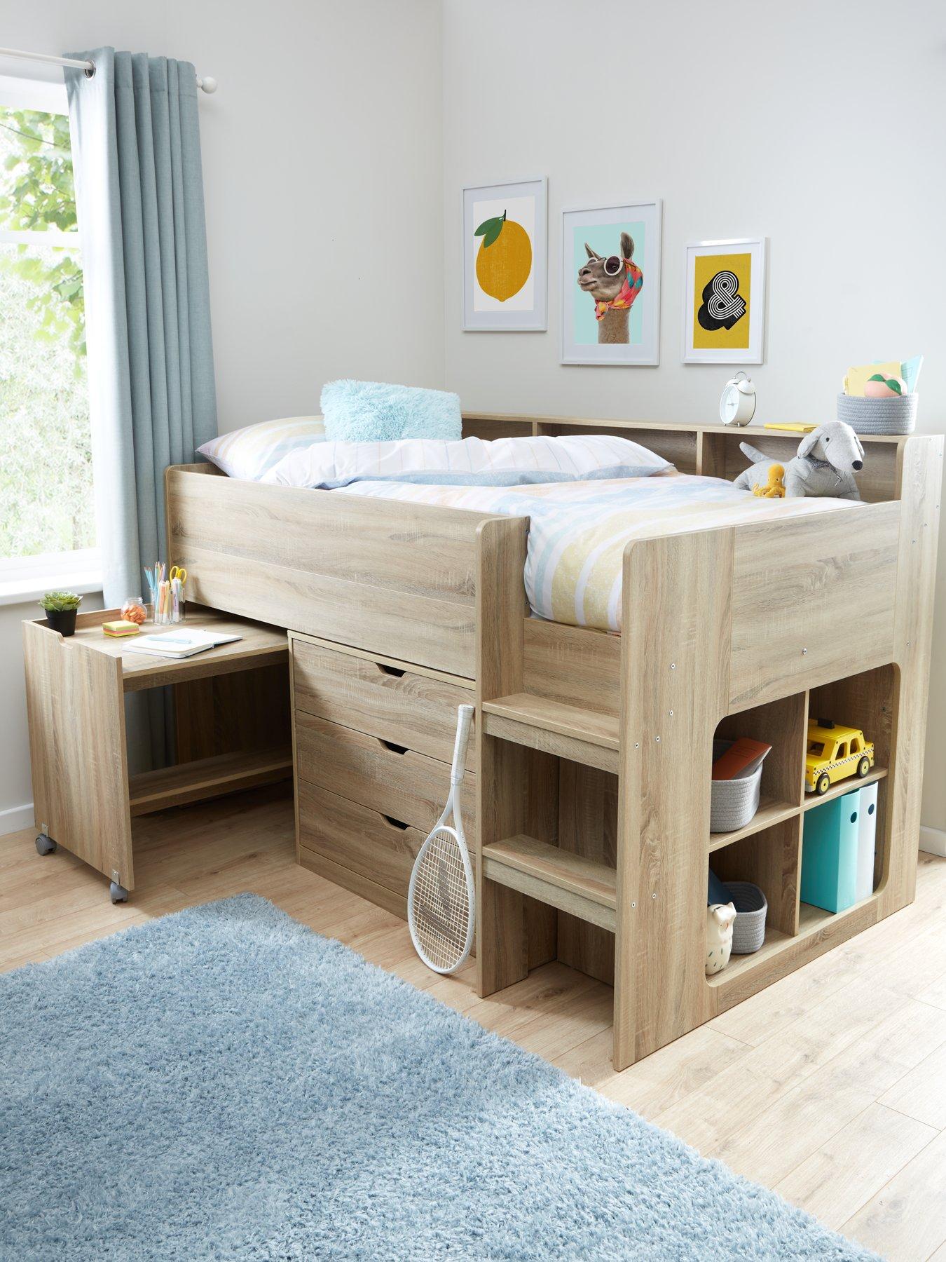 Oak cabin discount bed with storage, Very Home Aspen Mid Sleeper Bed Frame with Desk Drawers and discount