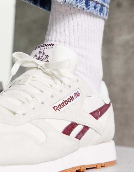 Reebok classic discount leather burgundy, Reebok Classic leather trainers in off white and burgundy discount