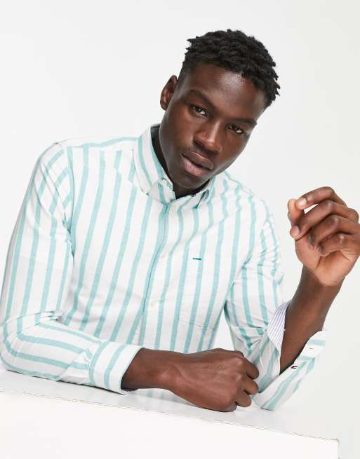 Tommy hilfiger discount green striped shirt