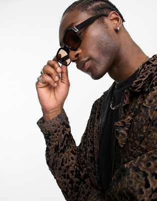 Topshop 70 s plastic rectangle sunglasses with blue lens Brown