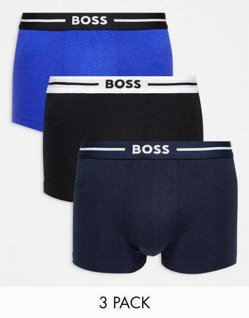 Boss Bodywear bold 3 pack trunks in black blue and navy ASOS