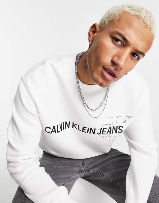 Calvin klein discount sweatshirt asos, Calvin Klein Jeans branded graphic logo sweatshirt in white ASOS discount