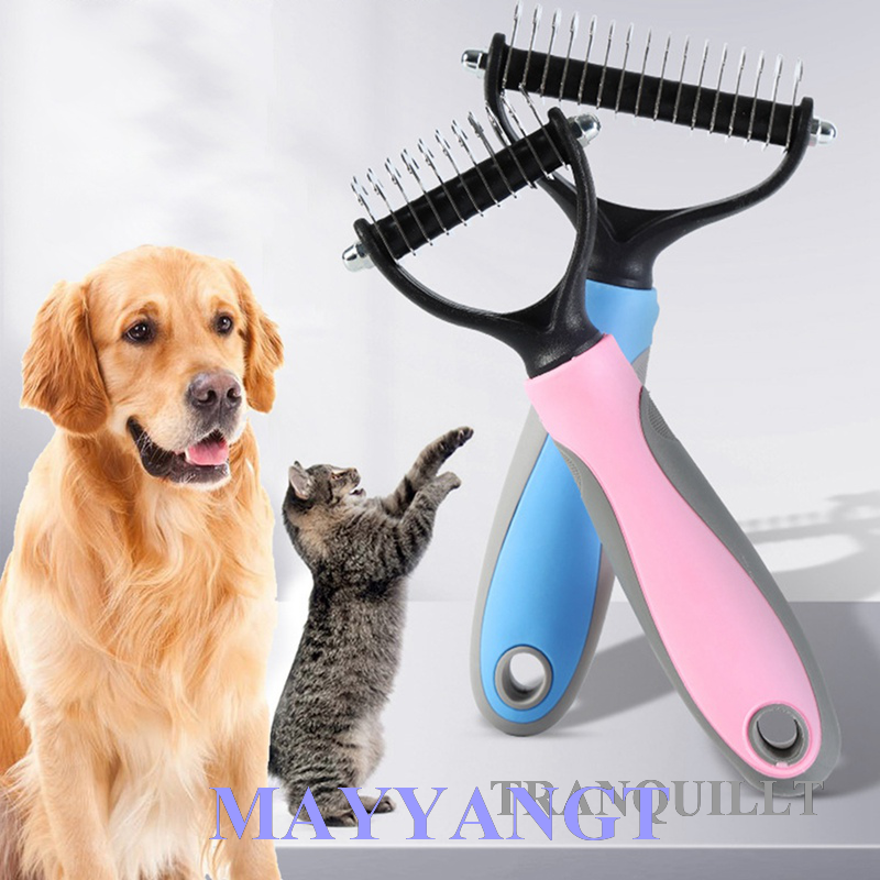 Dog With Undercoat Rake Dog Combing Large Small Dogs Cats And Rabbits Rake Comb Double Row Hair Removal Brush Puppy Hair Brush Not Pointed Steel Pin