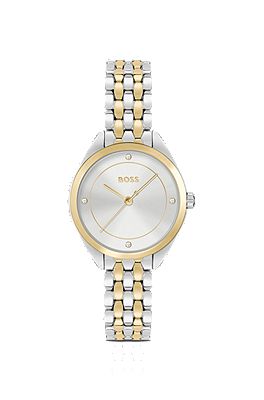 Hugo boss discount two tone watch, BOSS Crystal index watch with two tone bracelet discount